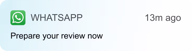 Employees are notified via WhatsApp, SMS, or email and can answer check-ins, reviews or surveys in a few minutes.